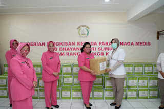 LASSERNEWS.COM – Medan, Ketua Bhayangkari Polda Sumut, Ny Risma Martuani Sormin, menyerahkan bantuan sosial (bansos-red) kepada para tim medis, Jumat (3/7/2020).